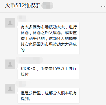 火币网给出赔偿方案后,记者所在的众多交易群中沸腾了,但在仔细看过公告后,有投资者向记者表示:对于高价爆仓的投资者,火币网并不会赔偿。